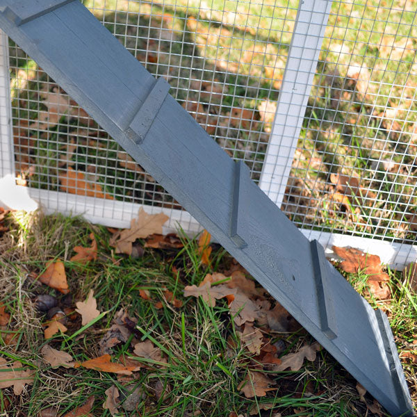 På hele det nederste areal kan din kyllingeflok gå og hakke i jorden og få masser af frisk luft. Udearealet er bygget med robust tråd.