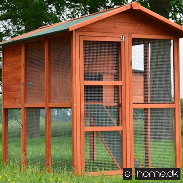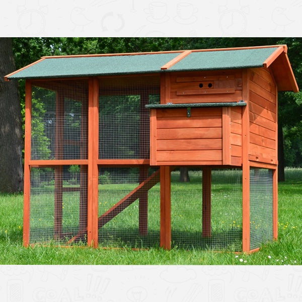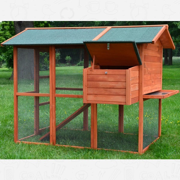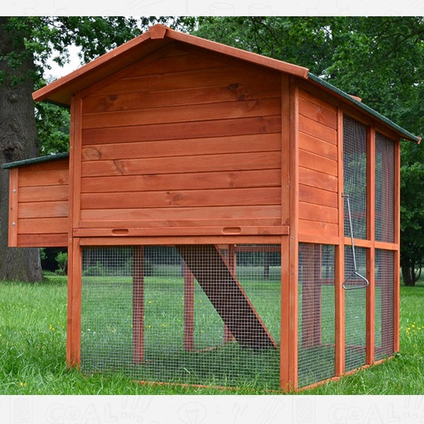 Den store udendørs gård på det lavere niveau, når dyrene nemt via den integrerede rampe. Den øverste etage, med træhus tilbyder også dine høns god plads.