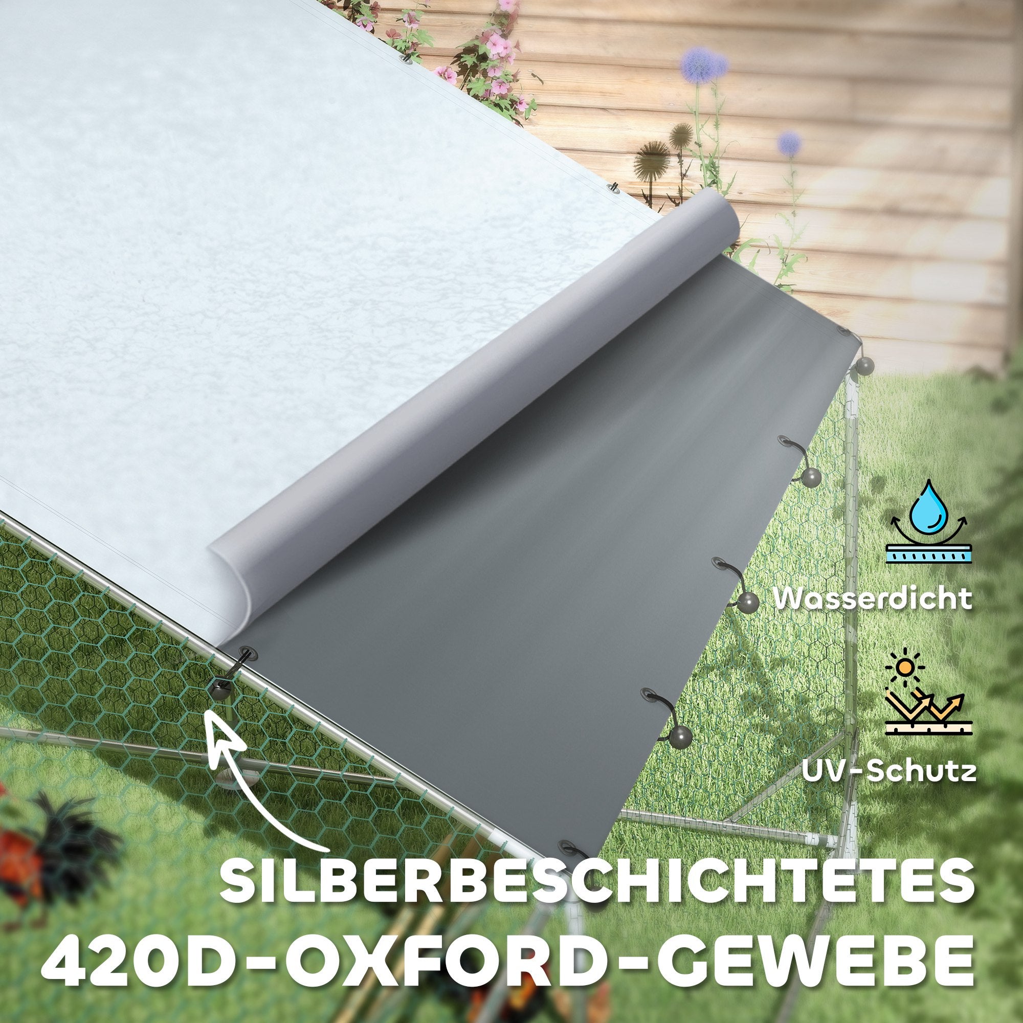 Giv din have et nyt look med PawHut hønsegården, et rummeligt hønsehus på 18 m² til 18-24 høns. Udstyret med galvaniseret stål og UV-bestandigt Oxford-stof garanterer det et sikkert og behageligt sted for dine fjerklædte venner. Den innovative dør til fritgående høns med indbygget foderadgang gør det nemmere at passe kyllingerne, og designet giver rigelig plads til at lege, løbe rundt og hvile.