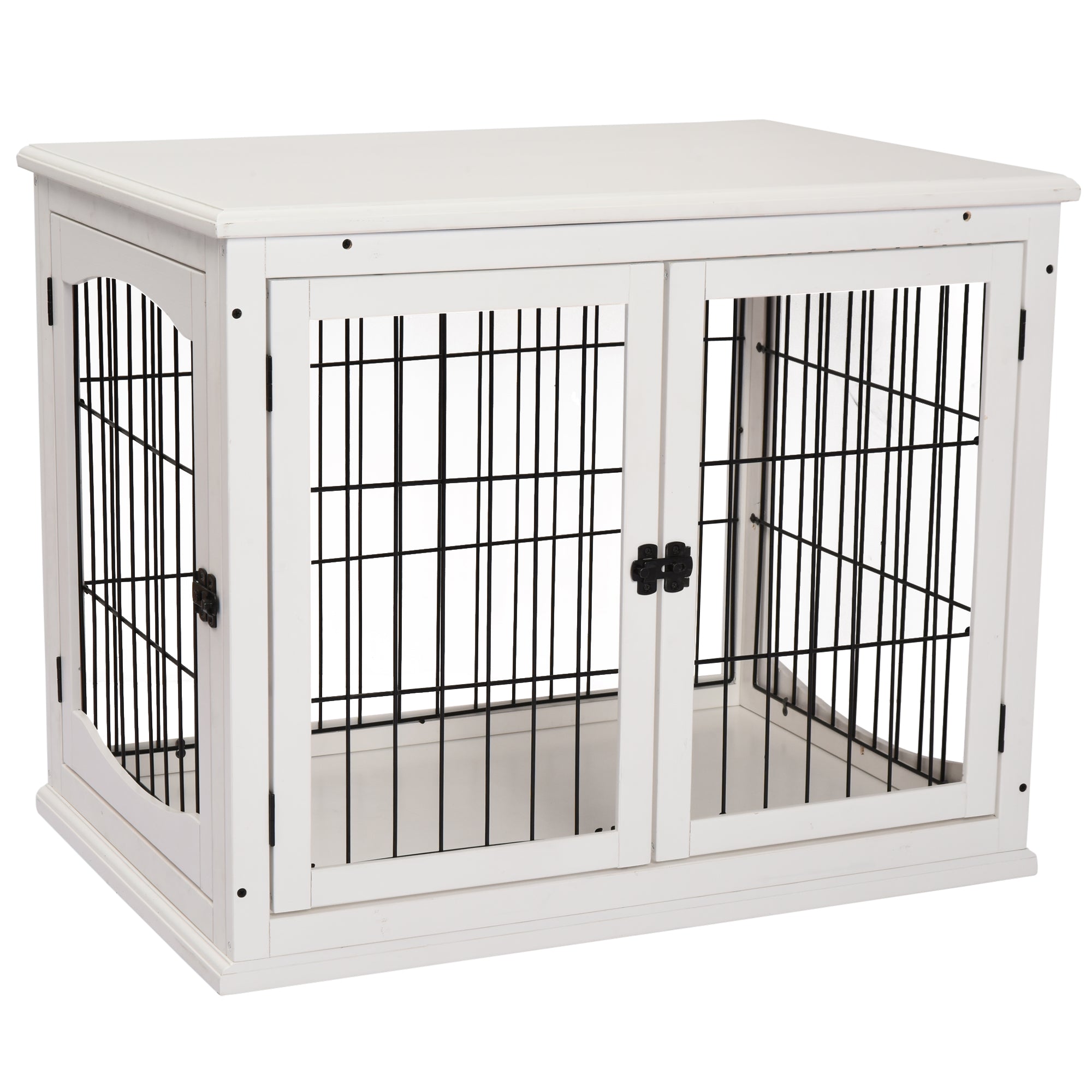 Hundehus, Hundehus, Transportkasse, Bur til små dyr til indendørs brug, 81 x 58,5 x 66 cm, Lavet af MDF og metal i hvid, Ideel til kæledyr