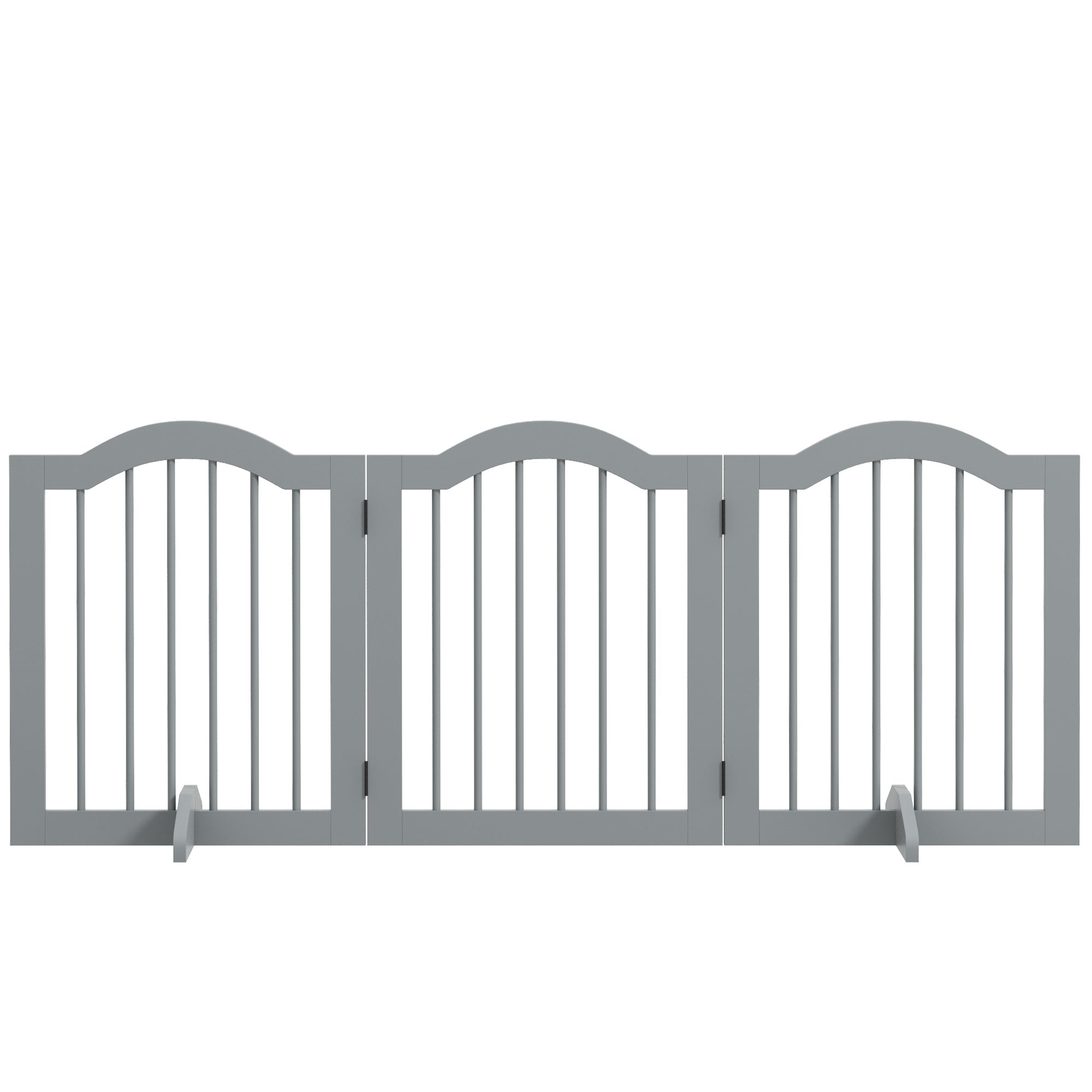 Hundegitter, 3-delt, 154,5 x 61 cm, Sammenklappelig Hundegitter med Dør, Dørsikkerhedsgitter med 2 Støttefødder, Fritstående Trappegitter til Køkken, Entre, Lysegrå