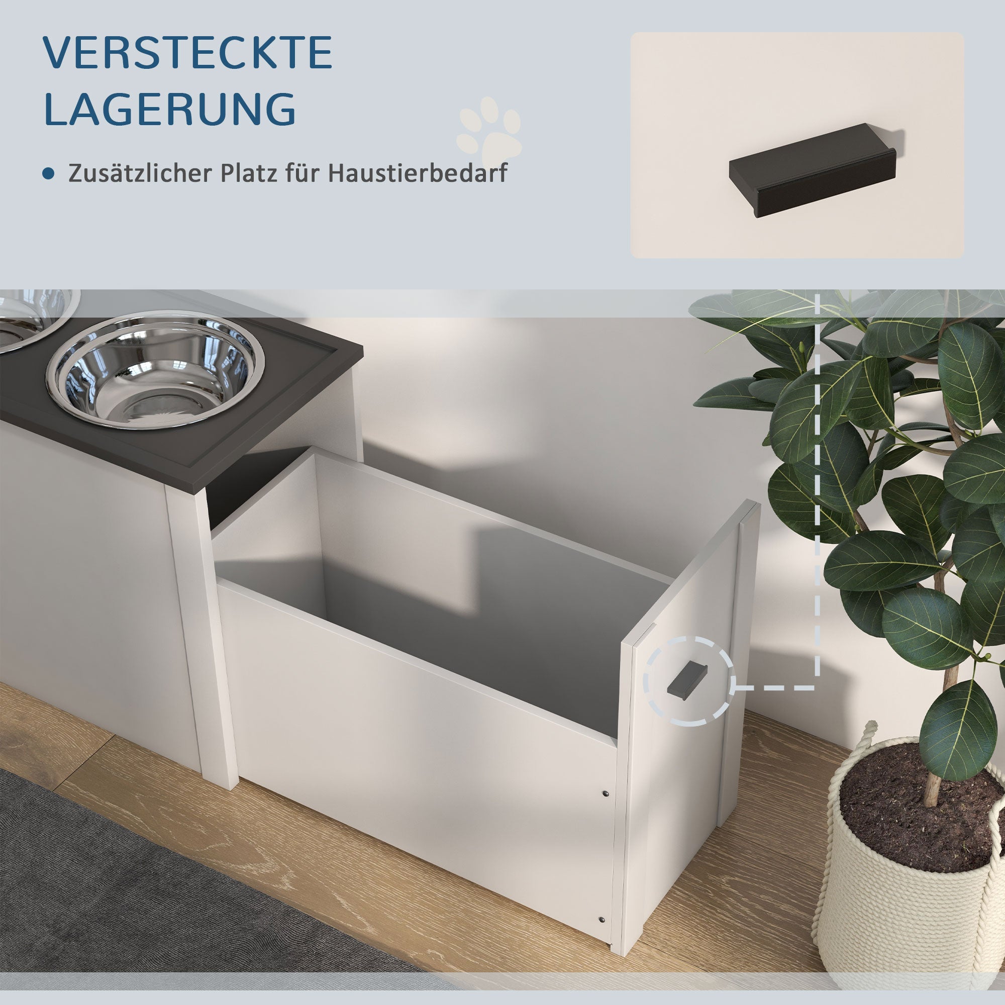 Forkæl din firbenede ven med vores PawHut foderautomat til kæledyr! Denne foderstation er designet med en hævet foderstander for at beskytte deres nakke og ryg, og har skjult opbevaring af mad og to aftagelige skåle i rustfrit stål. Stilfuld og praktisk på samme tid. Ikke mere ubehag under måltiderne - bare glade kæledyr. Opbevar foderet nemt direkte under foderautomaten for at holde det friskt.