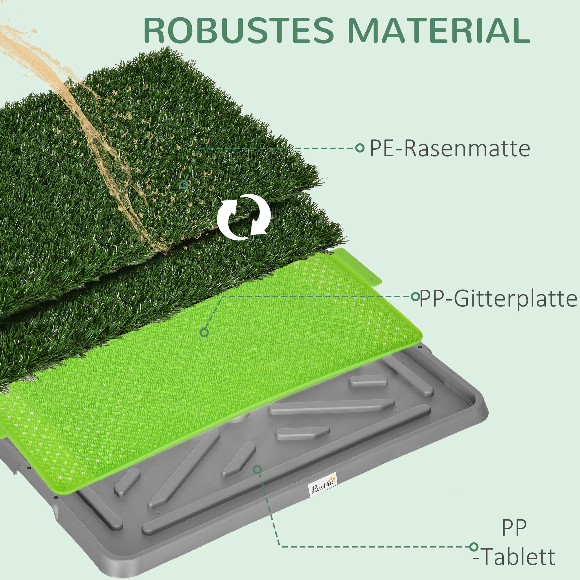 - ✔ Drænhuller i hundetoilettet sikrer renlighed og tørhed