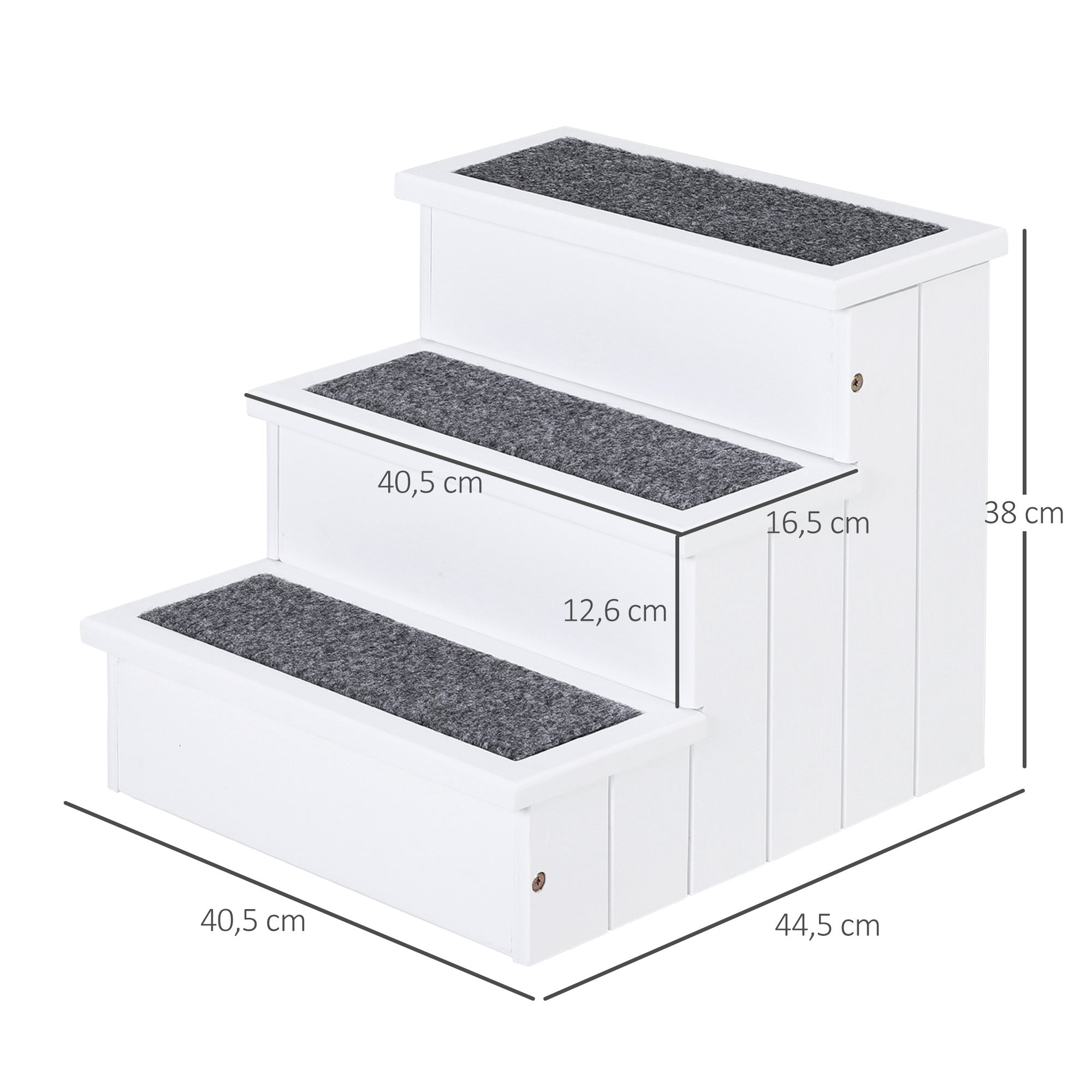 Især ældre kæledyr har ofte problemer med mobilitet. PawHuts kæledyrstrapper kan hjælpe. De giver ældre eller endda særligt små hunde nem adgang til sofaen eller bilen. Der er også masser af opbevaringsplads under trinnene til alle slags kæledyrsartikler. Trappen er lavet af robust fyrretræ, og de enkelte trin er beklædt med skridsikkert nålefilt.