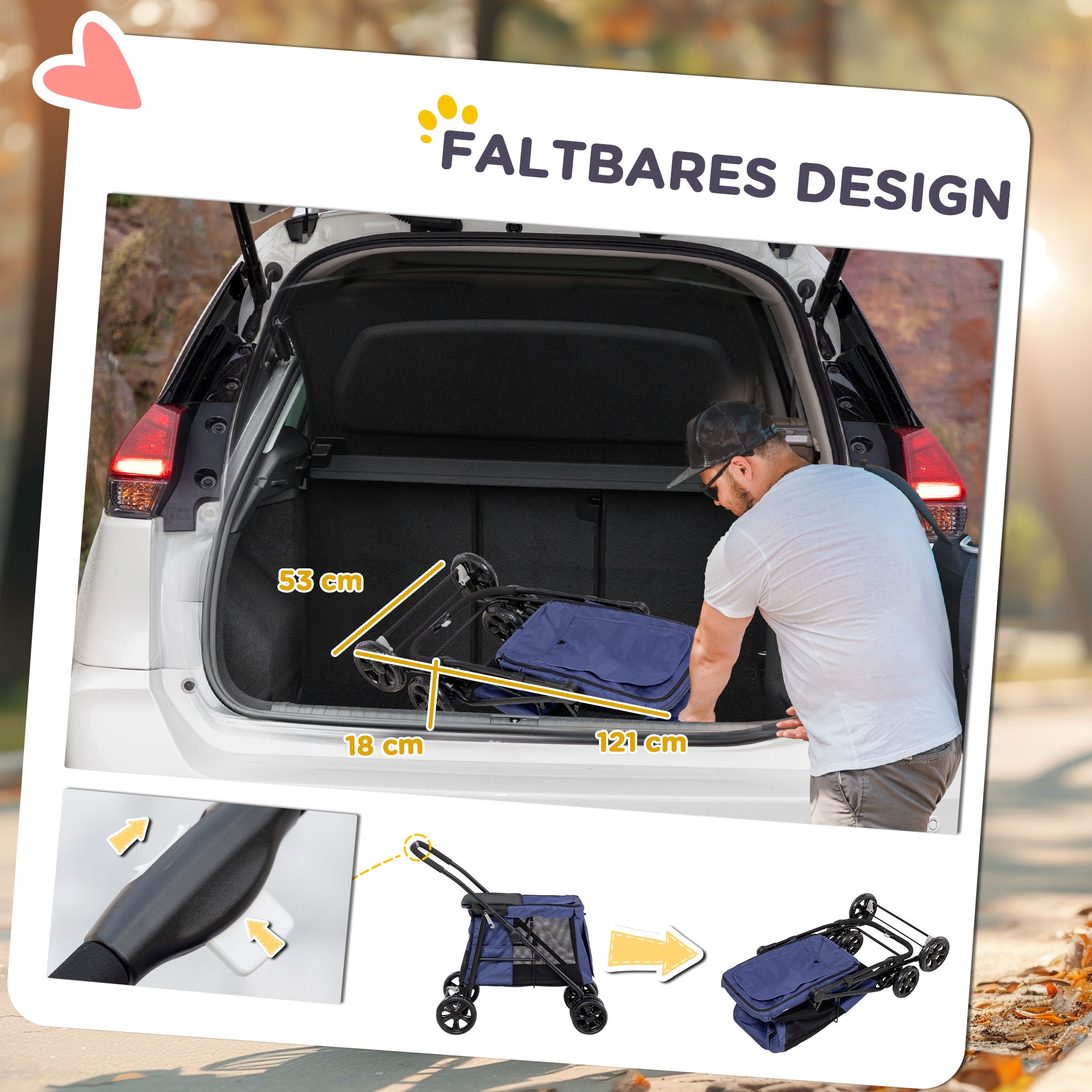 Hundevogn op til 20 kg foldbar hynde 3 sidelommer 102 cm x 62 cm x 105 cm Blå