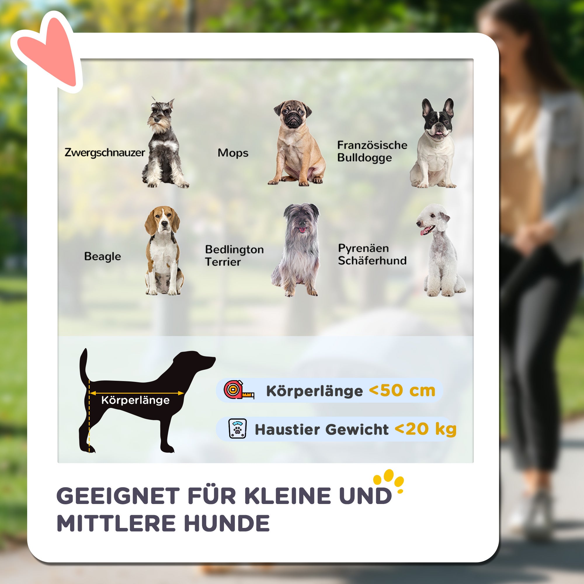 Med PawHut hundebåren kan du trygt tage dit kæledyr med udenfor. Den foldes sammen med et enkelt klik og er nem at transportere. Fire hjul og et håndtag gør den nem at flytte rundt på gaden. Hundebåren er rummelig, hvilket giver din firbenede ven masser af plads indeni, og netvinduer og -døre tillader masser af luft at komme ind og ud. Stofbetrækket kan rulles op for bedre ventilation.