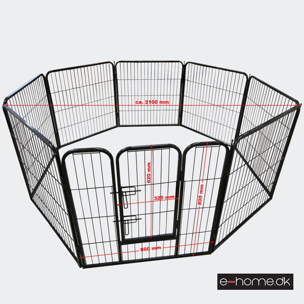 Hvalpegården består af 8 separate elementer, der kan monteres i en form, man ønsker, uanset om der er tale om en rektangel eller en ottekant. Ved hjælp af de fleksible sammenføjninger er mulighederne mange.