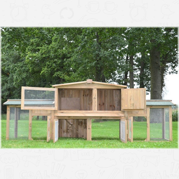 Den store to-etages kaningård Model Husmand er en XXL model med at løse fløje og en total bredde på hele 2,48 m!