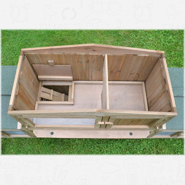 Det dyrevenlige lille hus har to store udgange og en behagelig rampe for uhindret adgang til stueetagen. Der kan dine gnavere boltre sig på ca. 2,48 x 0,52 m græsareal. Velegnet til kaniner, harer, marsvin og andre små dyr.