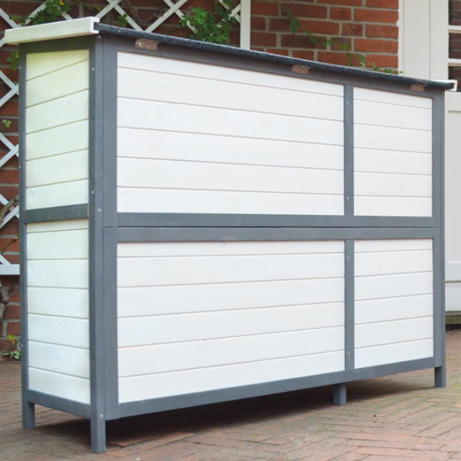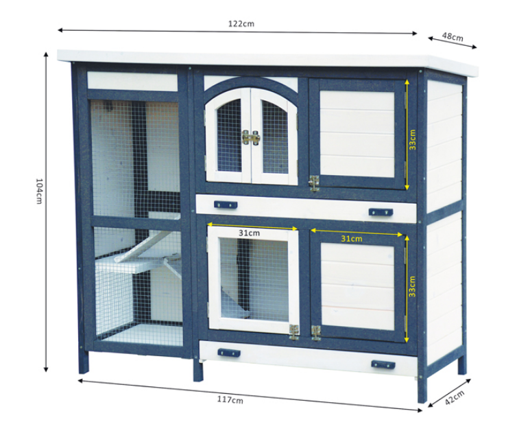En vidunderlig smuk to-etagers lille dyrestald. Det harmoniske, tofarvede design ønsker alle øjne og giver et nyt udtryk til enhver have. Denne model er allerede 2. generation med en yderligere forbedret kvalitet og fækale skuffer på begge etager.