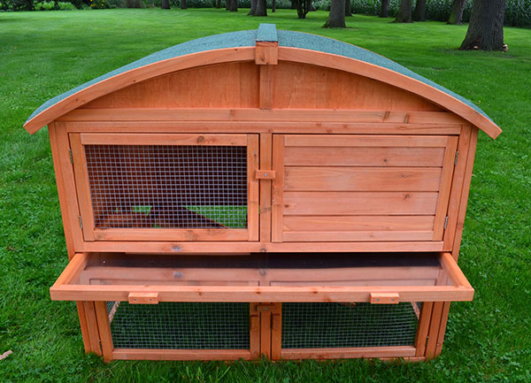 Under kaninhuset er en skuffe til nem rengøring. Skuffebunden er designet med et metalark, så materialerne ikke kan angribes. Desuden kan taget let fjernes omhyggeligt.