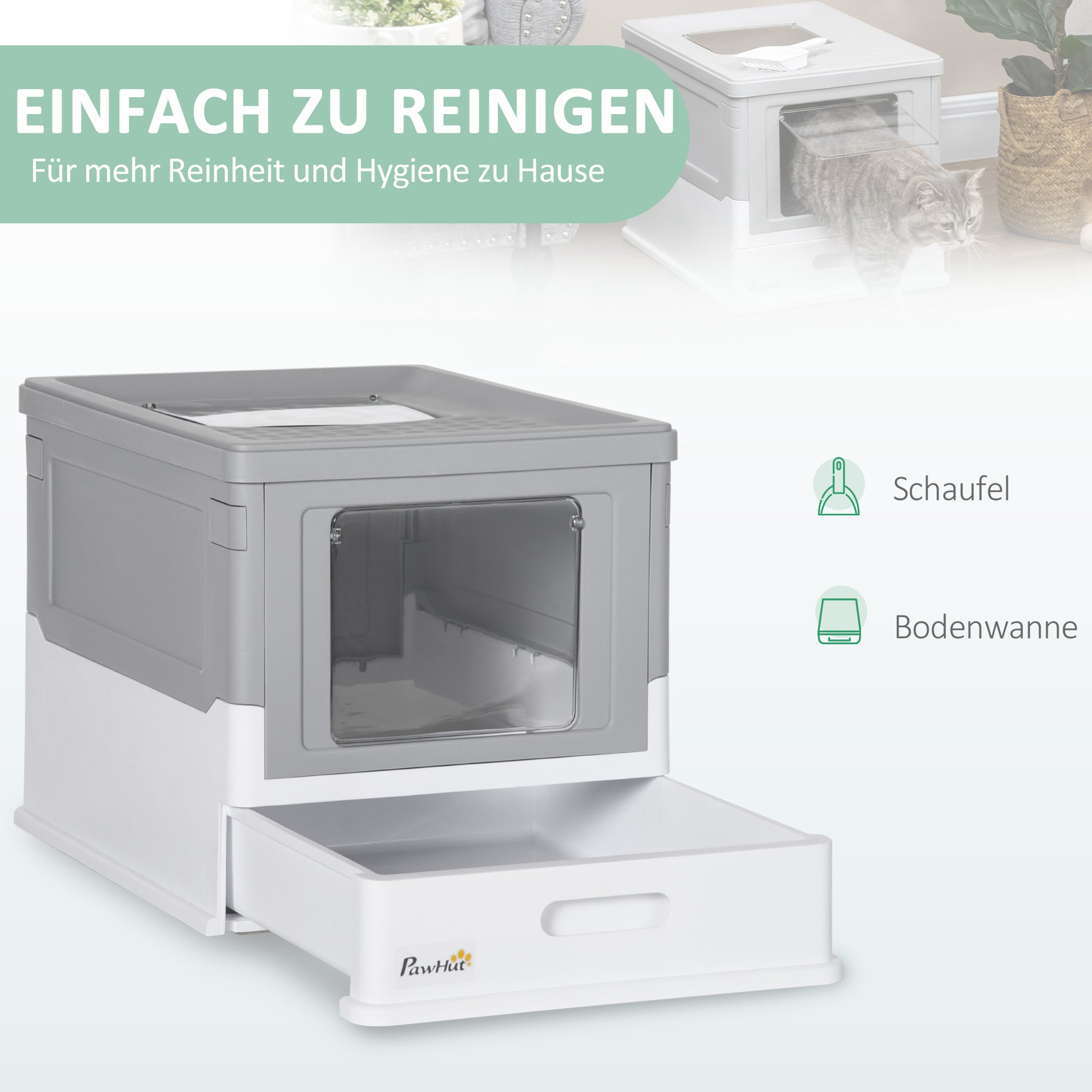 Denne moderne kattebakke fra PawHut tilbyder din kat et beskyttet og hygiejnisk sted at udføre sine gøremål. Det praktiske design sikrer orden og renlighed og sparer også affald. En spredeske inklusive tilbehør er inkluderet i leveringen. Kattebakkens design er moderne og passer ind i mange forskellige indretninger.