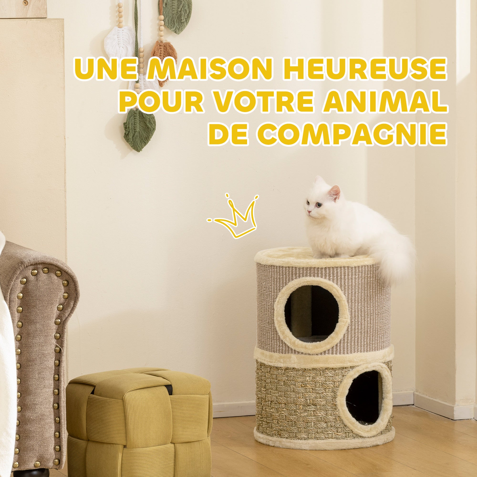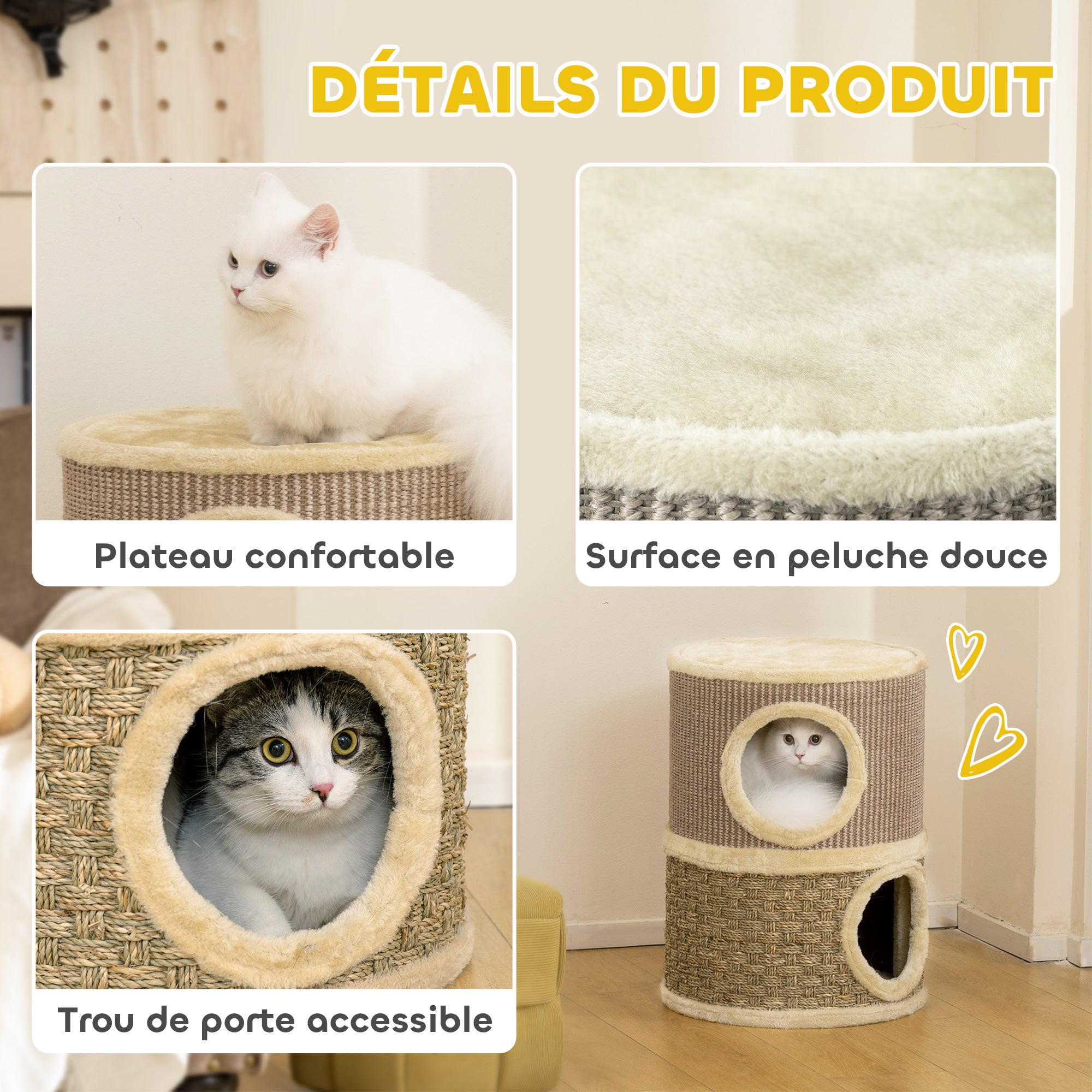 Denne PawHut kradsetræsstamme, dækket af sisal og tangreb, vil helt sikkert blive din kats nye yndlingssted. Den tilbyder et fantastisk sted at lege, sove og gemme sig. Den øverste del af kradsetræet er dækket af et blødt og hyggeligt materiale for en vidunderlig behagelig søvn.